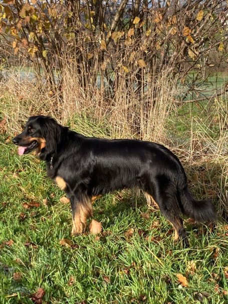 Uena wohnt mit ihrer Familie im ca. 800km entfernten Kanton Thurgau. Auf ihrer Webseite könnt ihr euch von der wunderschönen schwarzmarkenen, charakterstarken Hündin ein Bild machen: https://von-kalebs-erben.ch